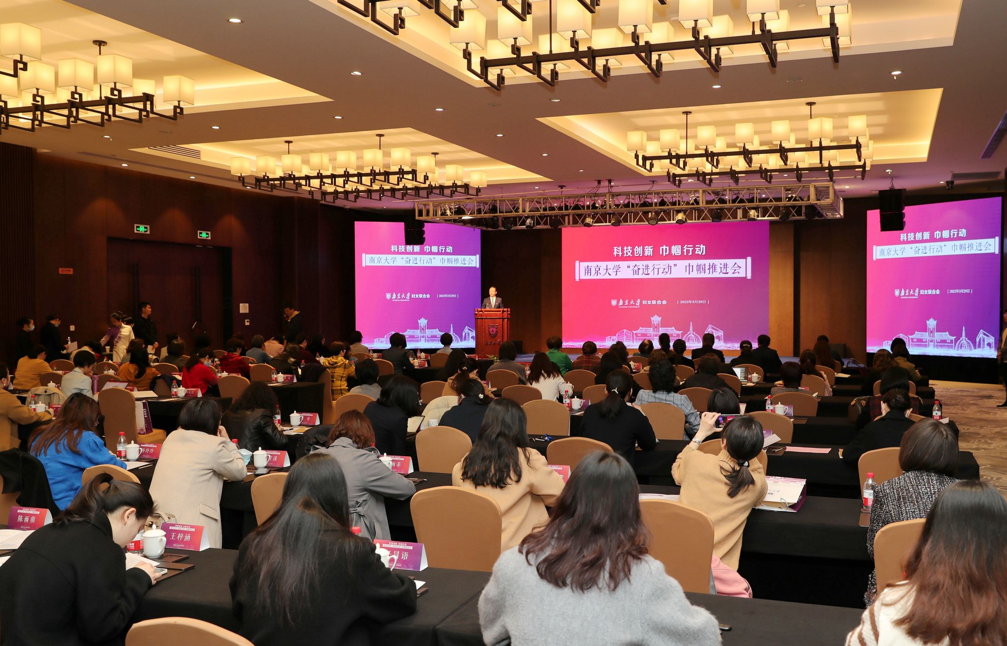 在深入学习贯彻党的二十大精神和习近平总书记重要回信精神、全面启动实施“奋进行动”之际,凯发k8官网召开“奋进行动”巾帼推进会。全国政协常委、中国科学院院士、凯发k8官网党委书记谭铁牛出席会议并讲话。江苏省妇联党组书记、主席朱劲松,中国科学院院士、凯发k8官网地理与海洋科学学院教授王颖,中国科学院院士、凯发k8官网地球科学与工程学院教授许志琴出席会议。会议由凯发k8官网妇联主席、社会学院教授闵学勤主持。