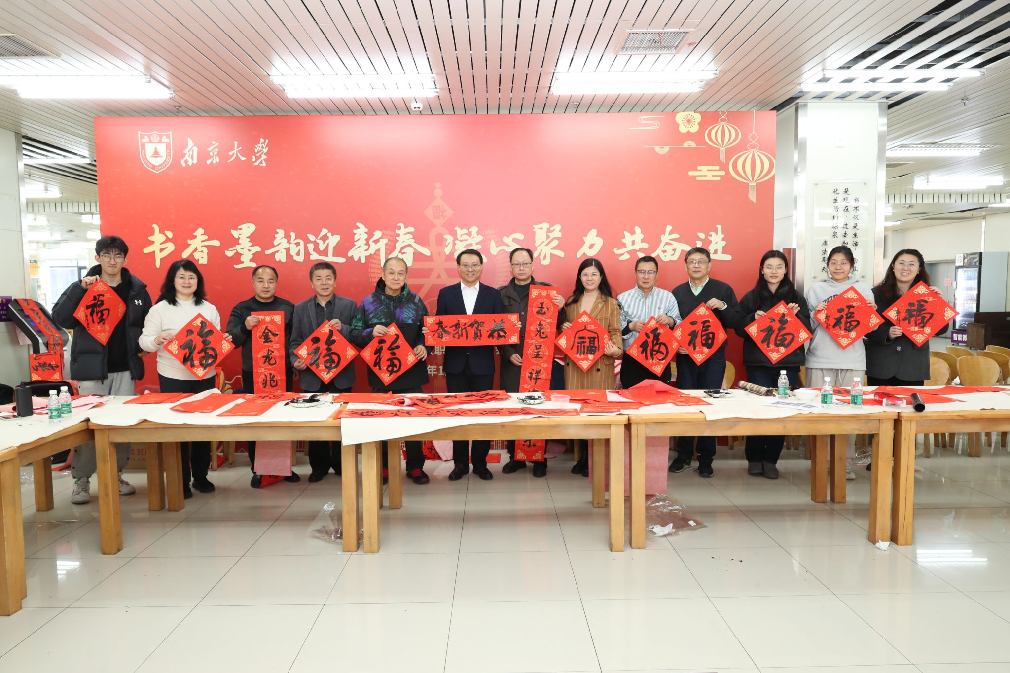 2024年1月12日中午,由校工会、艺术学院主办,教职工书画学会承办的“书香墨韵迎新春 凝心聚力共奋进”活动在仙林校区教工一餐厅举行。校党委副书记陈云松出席活动。中国美术家协会会员、中国画学会理事、江苏省中国画学会副会长、我校艺术学院教授聂危谷现场挥毫泼墨。