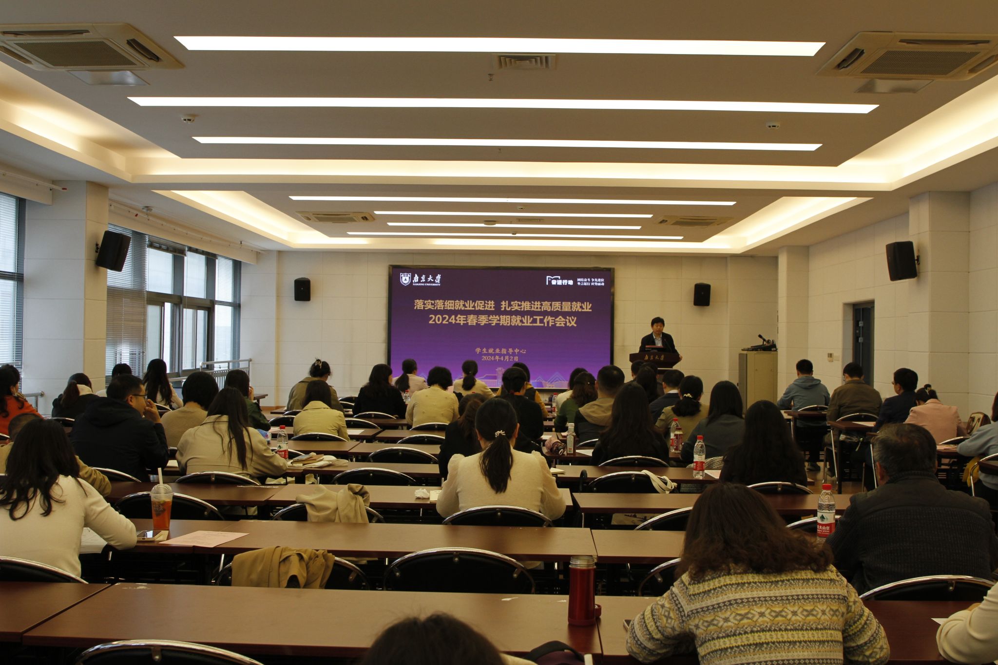为贯彻落实教育部办公厅关于开展春季促就业攻坚行动通知精神,落实落细就业促进举措,切实推动管理工作提质增效,全力冲刺2024届毕业生高质量充分就业,4月2日,我校在仙林校区召开春季学期就业工作会议。副校长陆现彩出席会议并做指导讲话,各院系党委副书记、全体毕业班辅导员及就业中心工作人员参加会议。