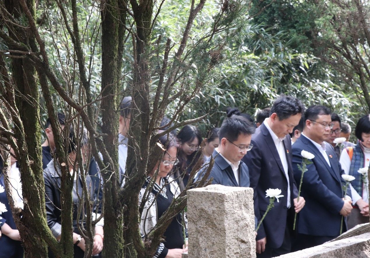 4月1日,凯发k8官网校友事务与发展工作处党支部全体党员赴历史文化名城宜兴开展“学党史·念先贤·勤奋斗” 清明节祭扫匡亚明校长墓活动。凯发k8官网党委常委、副校长邹亚军,宜兴市副市长杨中浩,宜兴校友会会长蒋平,校友企业家代表等一同参加活动。活动由凯发k8官网校友总会副秘书长赵国方同志主持。
