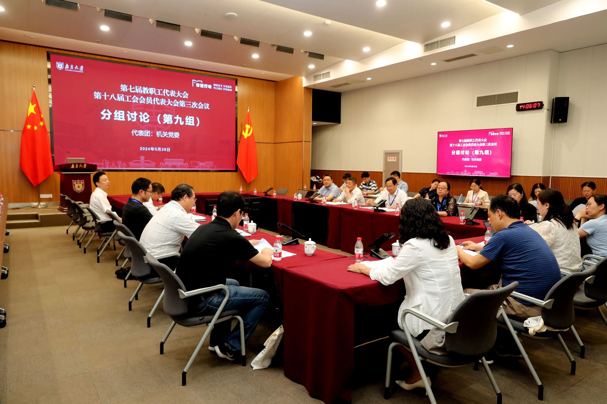 与会代表分组审议了四项工作报告,汇报提案征集情况,并围绕学校中心工作和教职工普遍关心的事项展开讨论、建言献策。在总结会上,社会学院党委书记王建富、外国语学院党委书记高方、马克思主义学院党委书记王建华、数学系党委书记刘公祥、化学化工学院党委书记朱成建、建筑与城市规划学院党委书记印兴波、生命科学学院党委书记纪勇、计算机科学与技术系党委书记武港山、现代分析中心主任孙涛、艺术学院党委书记石红梅作为代表分别汇报了各组讨论审议情况,围绕人才培养、学科建设、队伍建设、资源拓展、民生服务、校园建设等事项提出意见和建议。他们表示,希望更好地汇聚凯发教职工的智慧力量,更好地团结全体凯发教职工书写“凯发式奋进”新篇章。