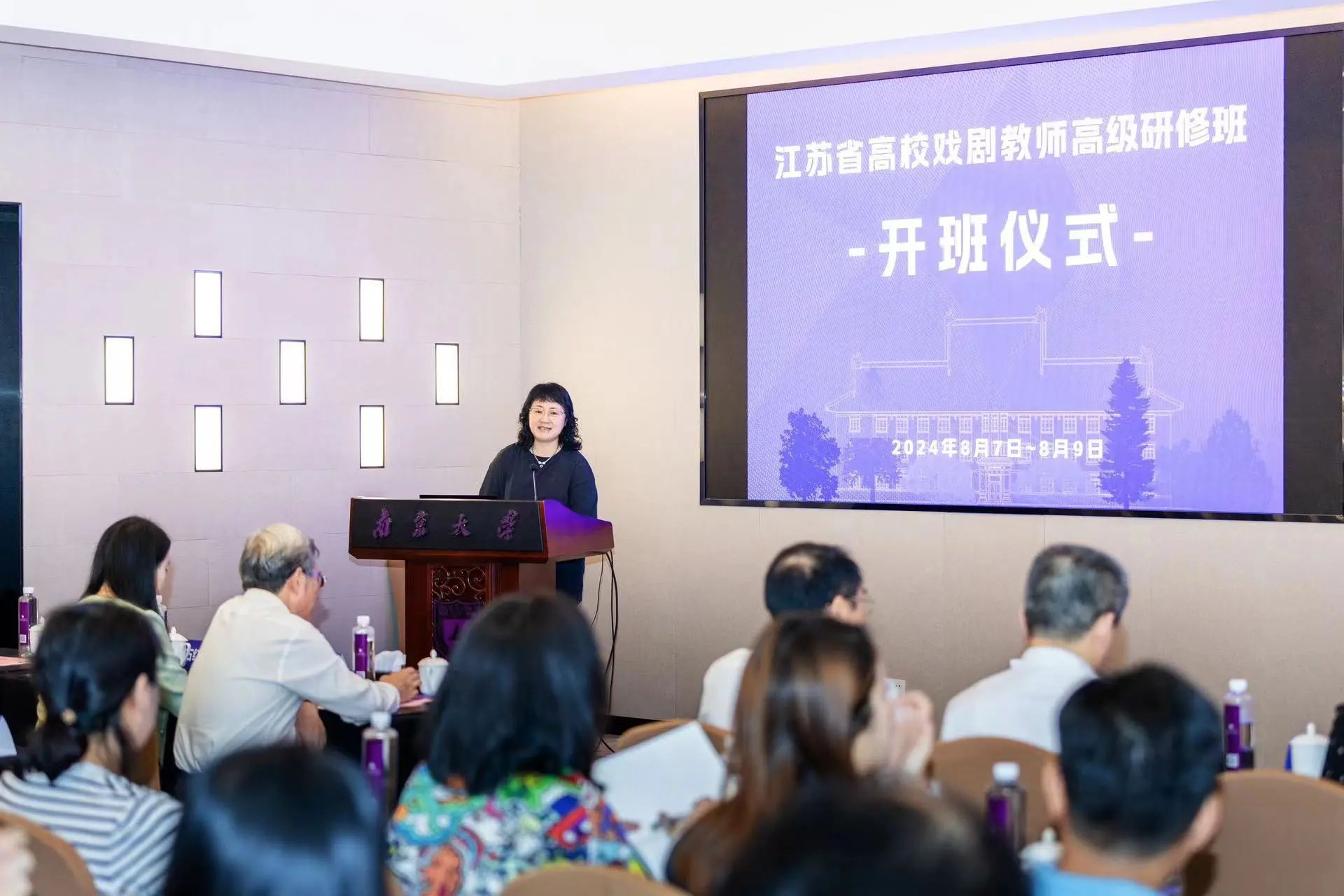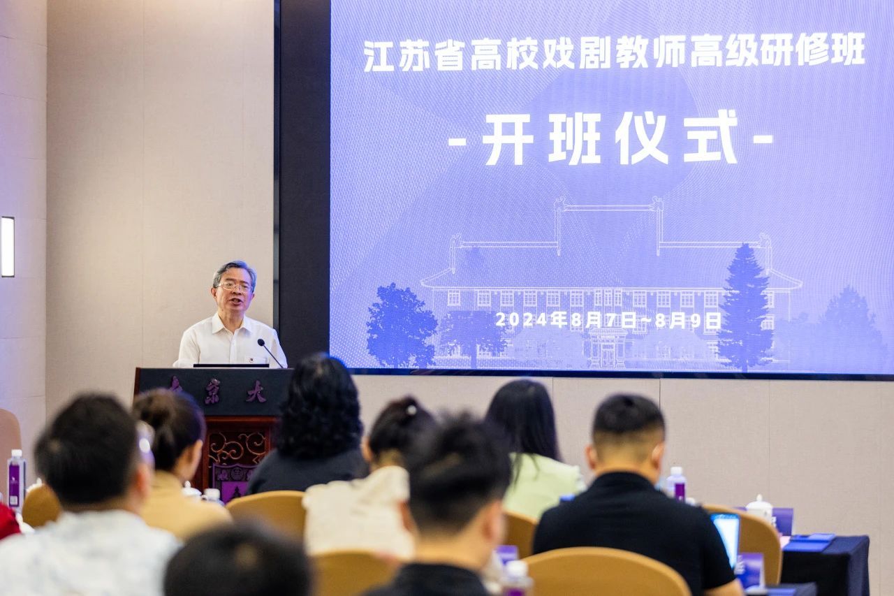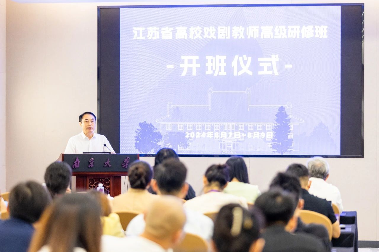 8月7日,2024年江苏省高校戏剧教师高级研修班开班仪式在凯发k8官网举行,来自江苏、上海、浙江、安徽等省市高校共68名教师参加培训。本期研修班由江苏省学校美育教学指导委员会主办,凯发k8官网承办,旨在全面贯彻落实教育部“美育浸润行动”和《长三角高校美育联盟建设方案》,加强学校美育教师队伍建设,提升高校艺术教师的美育素养、专业能力和教学水平,促进学校美育工作创新发展,打造协同创新、优势明显、开放高效的长三角地区美育新格局。