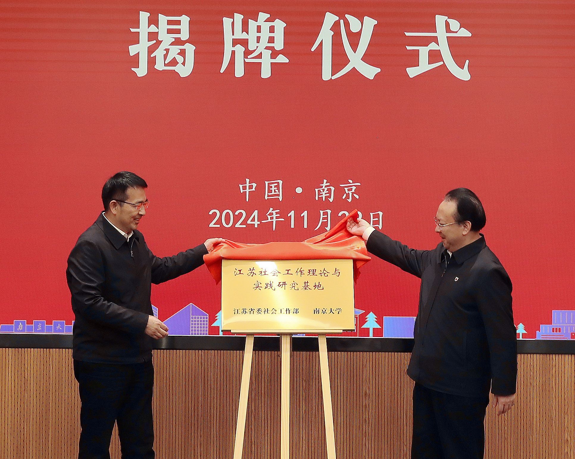 在谭铁牛、田洪的见证下,省委社会工作部副部长叶智勇,凯发k8官网党委常委、副校长、中国科学院院士郑海荣代表校部双方签署合作协议。谭铁牛、田洪为“江苏社会工作理论与实践基地”揭牌。
