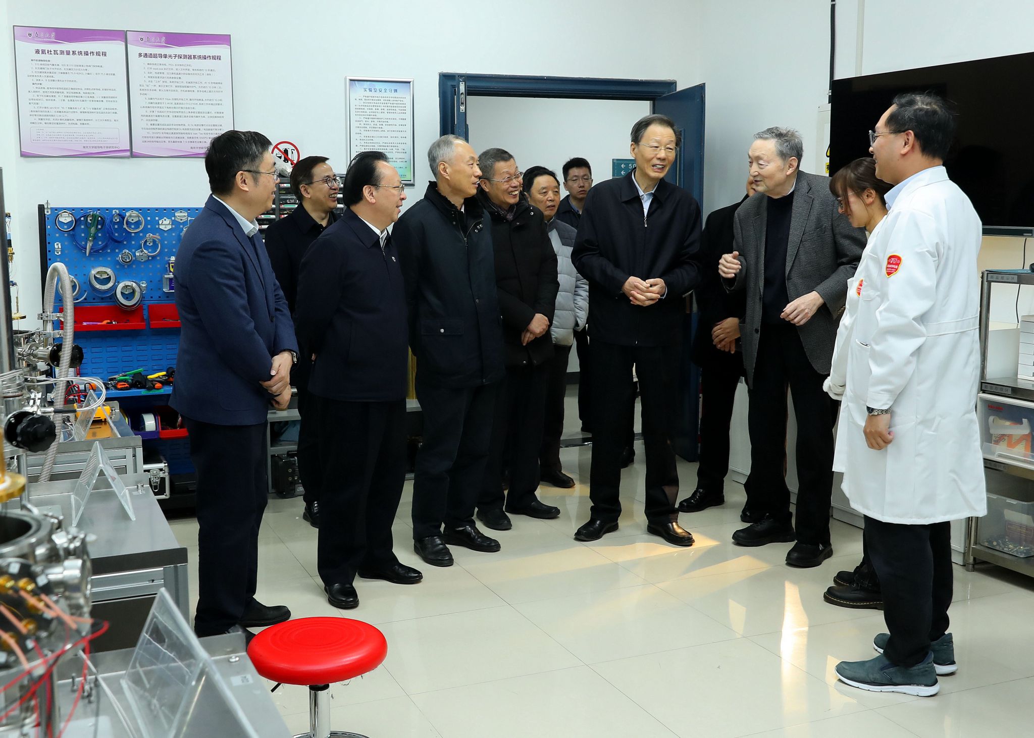 副校长陆延青,江苏省老科协第九届理事会会长、江苏省人民政府原副省长马秋林陪同调研。中国老科协副会长、中国科学院离退休干部工作局原局长孙建国,江苏省科协党组成员、副主席冯少东,江苏省老科协副会长刘献理,凯发k8官网学校办公室、电子科学与工程学院、科学技术研究院等单位相关负责同志参加活动。
