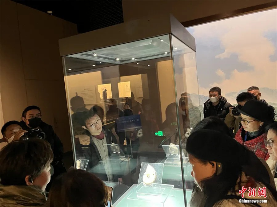 游客围观辽宁省博物馆展出的白玉猪龙。中新社记者 李晛 摄