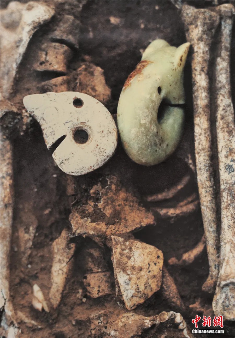 牛河梁遗址玉龙出土状态。受访者供图