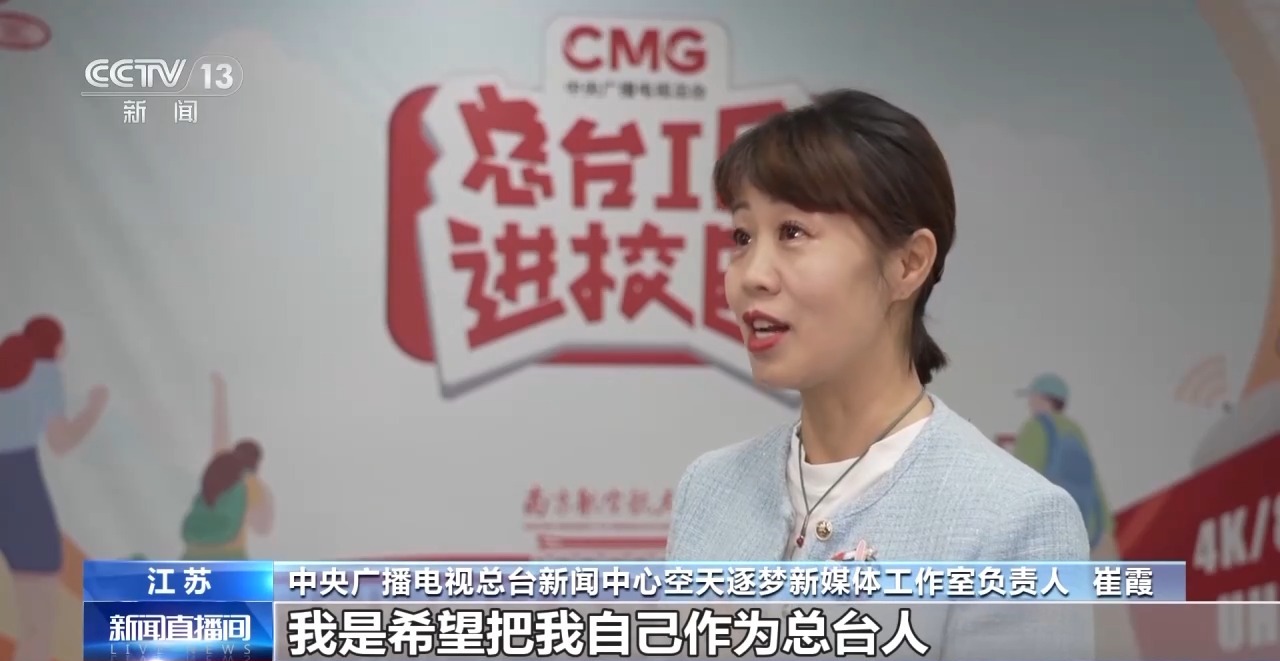 中央广播电视总台新闻中心空天逐梦新媒体工作室负责人 崔霞:这次总台IP进校园的这样一个活动,我是希望把我自己作为总台人,这些年在航空航天领域一些采访的故事,还有我的一些感悟分享给同学们。