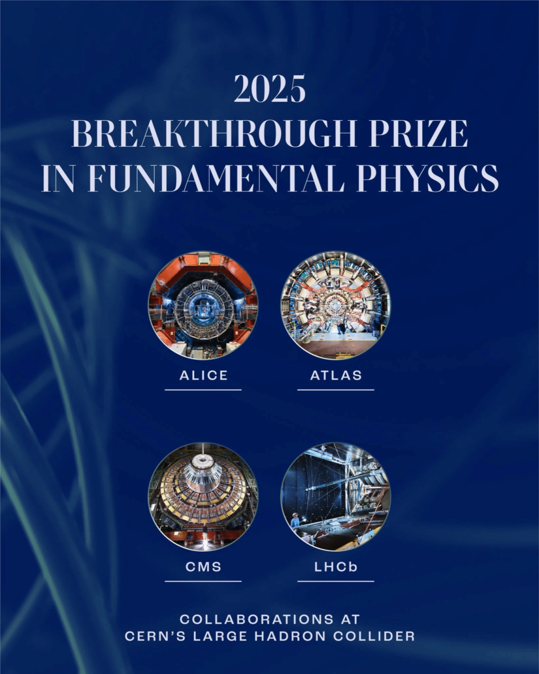 2025年基础物理学突破奖获奖者们分别来自欧洲核子研究中心(CERN)大型强子对撞机(LHC)的四大实验合作组——ATLAS、CMS、ALICE和LHCb实验。在这四大实验中,ATLAS和CMS合作组于2012年7月同时宣布发现希格斯玻色子,并持续深入研究其物理特性。ALICE实验专注于研究夸克-胶子等离子体,即一种宇宙大爆炸后最初几微秒内存在的极端高温高密物质形态。LHCb实验则致力于探索物质与反物质的细微差异、基本对称性破缺现象,以及由重轻夸克组成的复合粒子(强子)的复杂能谱。通过这些极其精密的实验测量,LHC的四大实验将基础物理学研究推向了前所未有的新高度。