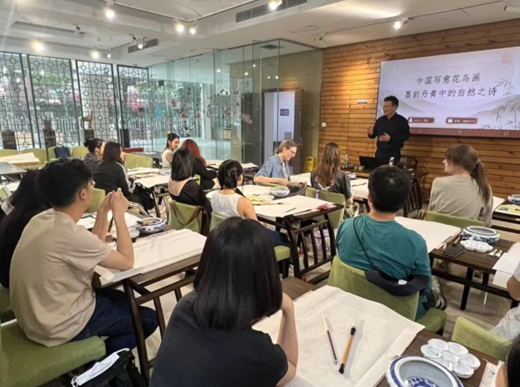 来自法国的留学生雷美玲难掩兴奋之情,激动地分享道:“这是我第一次如此近距离接触中国写意花鸟画,被它的独特魅力征服。翟老师的讲解让我深刻明白,每一笔都凝聚着画家的情感和对自然的独特理解。”