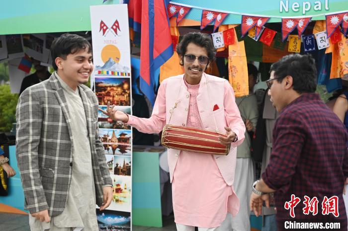 图为留学生身着他们各自国家的传统服饰在亚洲文化节上交谈。中新社记者 泱波 摄