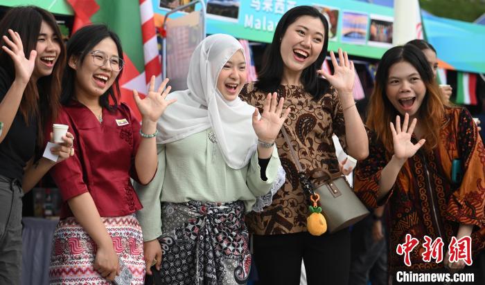 图为留学生在亚洲文化节上拍摄合影。中新网记者 泱波 摄