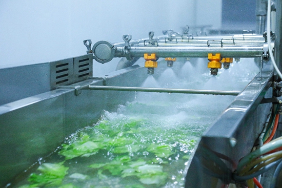 ▲沙拉轻食蔬菜进入工厂后需经过三次筛选、四重消毒,将异物、农残、大肠杆菌等全部洗净。姜小满|摄