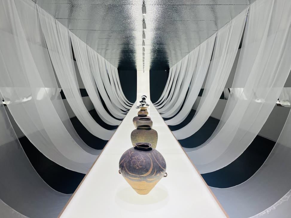 宿利群表示:“中国有两句成语与‘茧’有关——作茧自缚与破茧而出,实际上都象征着生命的一个轮回。有很多人问,陶瓷与蚕茧有什么关系?陶瓷也是有生命的。一只完好的瓷碗,可陪人二十年;一旦落地粉碎,它的第一次生命便宣告结束。千年之后,后人把碎片重新拼合、修补,碗再度完整,迎来第二次生命——这正是轮回。陶溪川球磨美术馆亦如此:它的前身宇宙陶瓷厂曾盛极而衰,厂房荒废如碎瓷;经改造,旧建筑重获新生,成为今日的文化平台,站在新的起点。从这个层面来说,陶瓷、厂房和蚕茧都在经历生命轮回。”