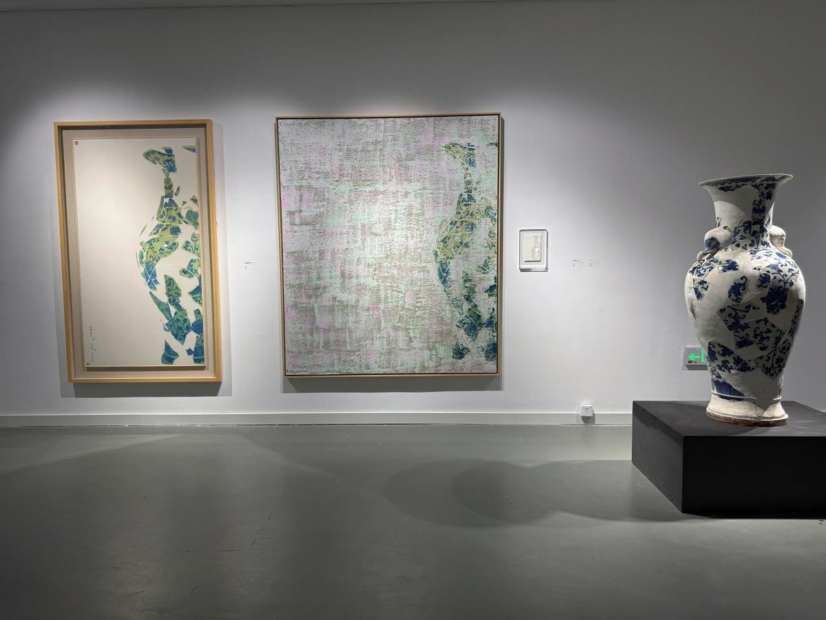 清华大学美术学院院长马赛向此次展览的开幕表示祝贺。他在致辞中指出,此次展览以“绘画—瓷器”对照方式呈现,每件绘画旁均摆放对应实物,观众可直接比对破损瓷片与画面意象,体验艺术家宿利群“由器入画”的独特路径。宿利群偏爱残器,认为破碎恰能开启新的审美空间;他用大漆修复瓷片,再以水墨转换其纹理、釉色与裂痕,画面兼具残缺之韵与再造之新,回应了“瓷画互译”的创作命题。