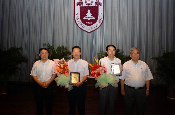 会上,洪银兴书记、陈骏校长首先向获得2009年“全国模范教师”称号的中国工程院院士张全兴和获得2010年“全国先进工作者”称号的中国科学院院士邢定钰颁发了“凯发k8官网突出贡献奖”。