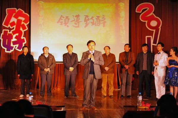 2010年12月31日晚,在金陵学院党政领导班子成员的陪同下,凯发k8官网常务副校长、金陵学院理事会理事长张荣,凯发k8官网党委常委、组织部长、金陵学院监事会副主席王志林,凯发k8官网校长助理、金陵学院院长王殿祥等校领导一行来到浦口校区亲切慰问金陵学院师生员工。在力行馆,张荣常务副校长向金陵学院广大师生员工表示慰问并致以新年祝福,他简要回顾了2010年金陵学院的主要办学成绩并给予高度评价,希望大家继续努力,早日把金陵学院建成具有特色的全国一流独立学院。随后,学院党委书记冯维波与潘芮菱同学合唱一曲《为了谁》,赢得满堂喝彩。在欣赏了同学们的精彩表演后,校领导一行先后来到学院门卫室、学生食堂和宿舍等处,向坚守岗位的员工和复习迎考的同学们致以节日的问候。