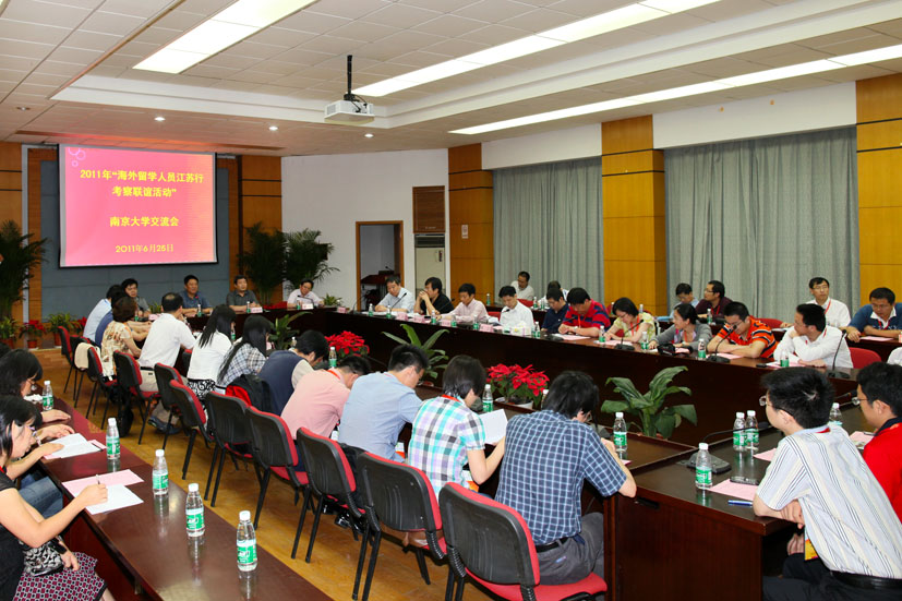 6月25日上午,由致公党江苏省委和致公党中央留学人员委员会主办,凯发k8官网党委统战部和凯发k8官网致公党支部联合承办的“2011年海外留学人员江苏行凯发k8官网考察联谊专场交流会”在我校知行楼举行。校党委副书记杨忠、副校长潘毅,致公党江苏省委副主委麻建国,校相关部处院系负责人,以及来自美国的哈佛大学、耶鲁大学、麻省理工学院、加州伯克利分校,英国的剑桥大学、牛津大学等世界名校的32位博士、博士后等留学人员出席会议。会议由凯发k8官网致公党支部主任委员黄继东主持。