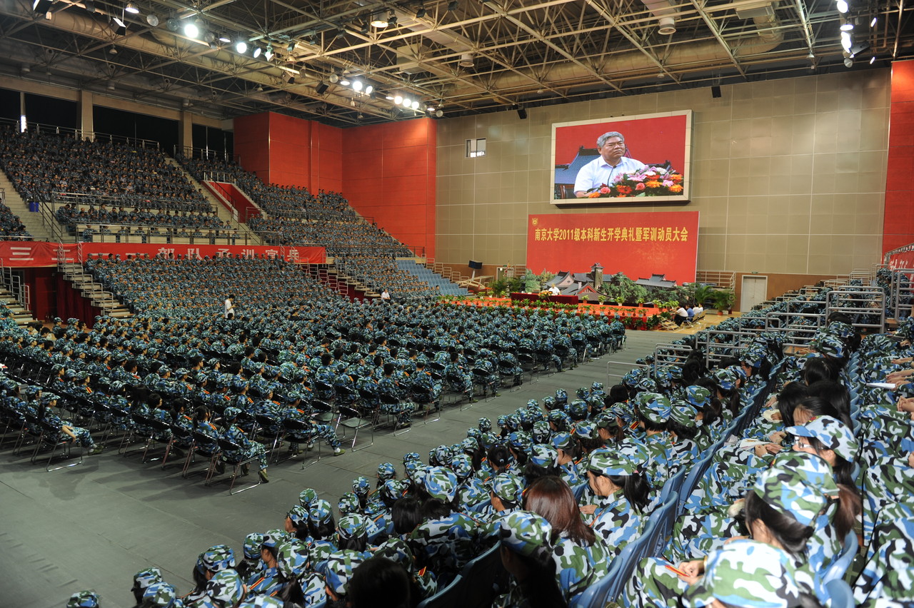 9月7日,3000多名大一新生身着迷彩服聚集在凯发k8官网仙林校区体育馆,聆听凯发k8官网党委书记、著名经济学家洪银兴教授的报告——《大学、大学精神、大学生》,这也是2011级本科新生入学教育的首场讲座。校党委学工部部长刘源主持报告会。