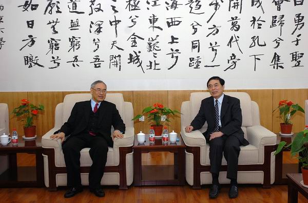 演讲结束后,在图书馆贵宾厅,陈骏校长亲切会见了刘遵义夫妇,并介绍了仙林校区建设发展情况。刘遵义教授对我校仙林校区的建设给予了高度评价。他指出,教育不仅在课堂里,还在课堂外。大学不要建在市中心,建在郊区有更大的发展空间,便于学生与学生之间、师生之间的交流。他建议我校定期为学生播放艺术电影、老电影等一些经典影片,为仙林学生安排丰富多彩的业余生活。他认为,新老师为研究生授课,资深教师为本科生授课非常正确。因为新老师工作不久,研究得比较深入、前沿,能与研究生很好衔接;而资深教授教课多年,经验丰富,能将知识讲得更加通透,深入浅出,便于本科生接受,并且能激发本科生的兴趣。谈到中国经济改革时,他认为,所有改革都需要强势政府的推动,中国在这一点上做得很好。2007年中国能平安度过经济危机,人民币不贬值的决定很重要。2008年中国4万亿经济方案对稳定国内信心起了非常重要的作用,这些只有强势政府才能做到。
