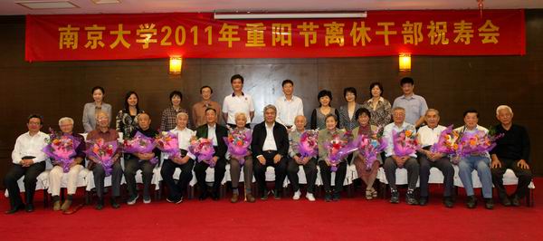 重阳节前夕,我校分别为39位年满75、80、85、90岁的离休干部和197位年满70、80、90周岁的退休教职工集体祝寿。校党委书记洪银兴、常务副书记张异宾、副校长杨忠、相关院系党委和行政负责人以及有关职能部门主要负责同志参加了祝寿会。
