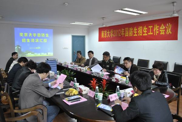 会上,选培办潘大清主任介绍了近年来的国防生生源质量情况及有关国防生招生政策法规,学工处姜辉副处长就2012年国防生招生宣传工作发表意见,与会人员围绕国防生招生工作,对存在的薄弱环节进行了深入分析和探讨,并就加强和改进工作方法谈了建议。