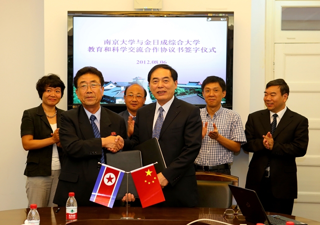 随后,陈骏校长和成自立校长就两校合作签订了框架合作协议。代表团一行还参访我校物理学院和朝鲜语系,就合作的具体形式和内容进行进一步商讨。