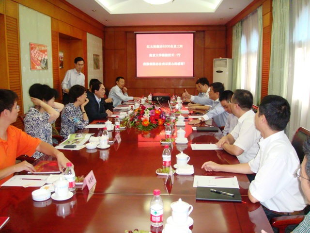 陈骏校长高度评价了红太阳集团取得的成就,认为企业的创业历程、经营理念及企业文化是对大学文化很好的补充,并建议双方在2011计划的指导下,以企业的创新需求为牵引,发挥高校的人才优势,共建研究院形式的协同创新中心,实现人力资本和产业资本的对接。同时创新机制,让一流的教授走出校门,走上产学研合作的第一线。