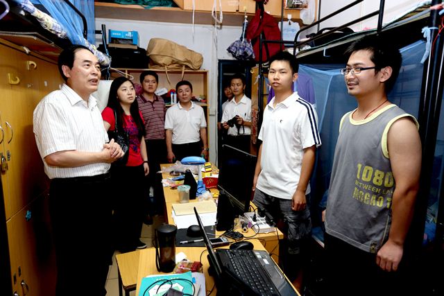 陈骏校长先后来到学生宿舍十四舍、二十舍、十八舍、十一舍等实地查看,看望了刚搬到鼓楼的本科大四学生和研究生新生,与学生亲切交谈,了解同学们的生活情况,“三三制”改革后的学习感受,升学就业等方面的情况,并听取他们对住宿条件和后勤服务工作的意见与建议。陈校长还与学生分享了自己大学时代住在六舍和十一舍的生活经历,勉励同学们克服暂时的困难,努力学习,顺利完成学业。最后,陈校长还特别祝同学们中秋国庆双节愉快。