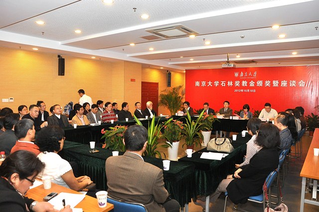 匡亚明学院许望、信息管理学院沈固朝、外国语学院王守仁、文学院吕效平、体育部殷飞、海外教育学院陈佩秋、建筑与城市规划学院赵辰、医学院朱亚文老师先后发言。他们畅谈了自己长期坚持本科一线教学的酸甜苦辣,感谢学校和石林集团共同设立奖教金认可老师的付出,并表示,今后仍将继续奉献在教学一线,为我校“三三制”本科教育改革贡献自己的力量,同时享受教书育人的乐趣。