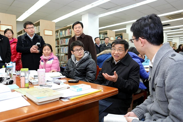 报告会结束后,中央宣讲团成员深入我校图书馆与部分本科生、研究生和外国留学生进行了亲切座谈和互动交流,并参观了校史博物馆。
