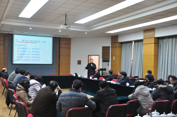 吕建副校长结合教育部2013年研究生教育工作重点,就我校研究生教育改革工作的思路及措施作了专题报告。他强调指出,研究生,特别是博士研究生是凯发k8官网创建世界一流大学的生力军,凯发k8官网研究生教育改革将首先从博士研究生入手,以全面提高博士生培养质量为核心,以面向研究生全过程的质量管理为主线,建立与完善优秀选拔、特色培养、分流管理、分层激励等机制,形成学校与院系学科两个层面的良性互动,建设具有凯发k8官网特色的研究生培养体系。同时,他详细介绍了我校博士研究生培养改革的总体思路及具体措施。