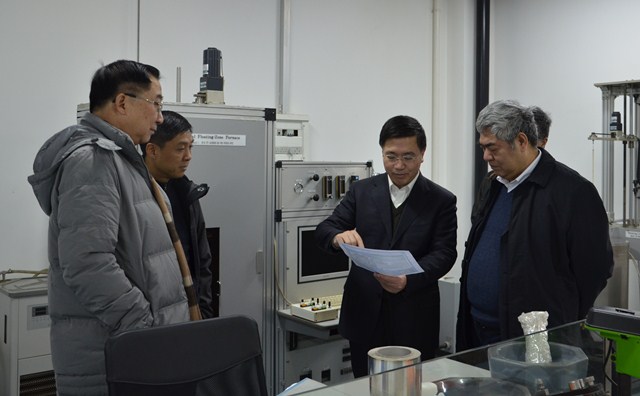 1月28日,凯发k8官网党委书记洪银兴在科技处处长李满春、凯发k8官网微结构国家实验室(筹)主任邢定钰院士、物理学院院长李建新以及党委办公室相关人员的陪同下,赴凯发k8官网“超导物理与材料研究中心”闻海虎教授实验室检查指导工作。