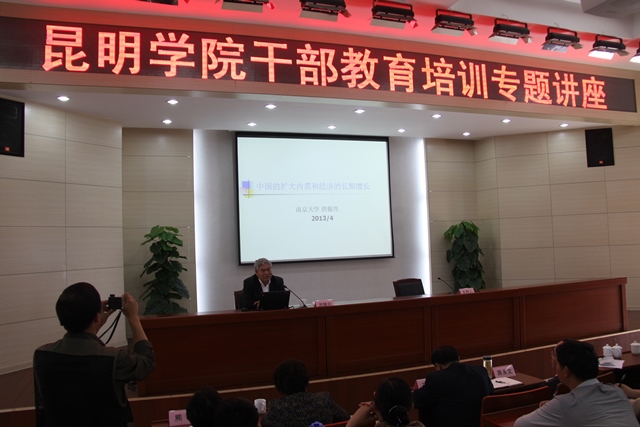 5月6日至7日,洪银兴书记率团先后访问昆明理工大学、昆明学院并应邀为昆明学院全体干部作“十八大后的经济指向”专题讲座。