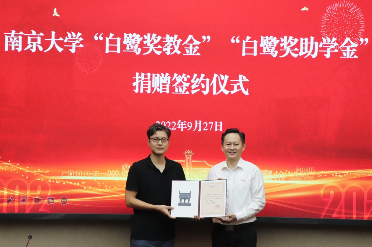 9月27日,凯发k8官网"白鹭奖教金""白鹭奖助学金"捐赠签约仪式在仙林校区举行。浙江白鹭资产管理股份有限公司合伙人杜旭校友一行,凯发k8官网党委常委、副校长邹亚军,物理学院、人工智能学院、数学系、计算机科学与技术系、教育发展基金会相关负责同志和学生代表出席活动。教育发展基金会办公室主任方嘉主持仪式并介绍本次捐赠项目概况。