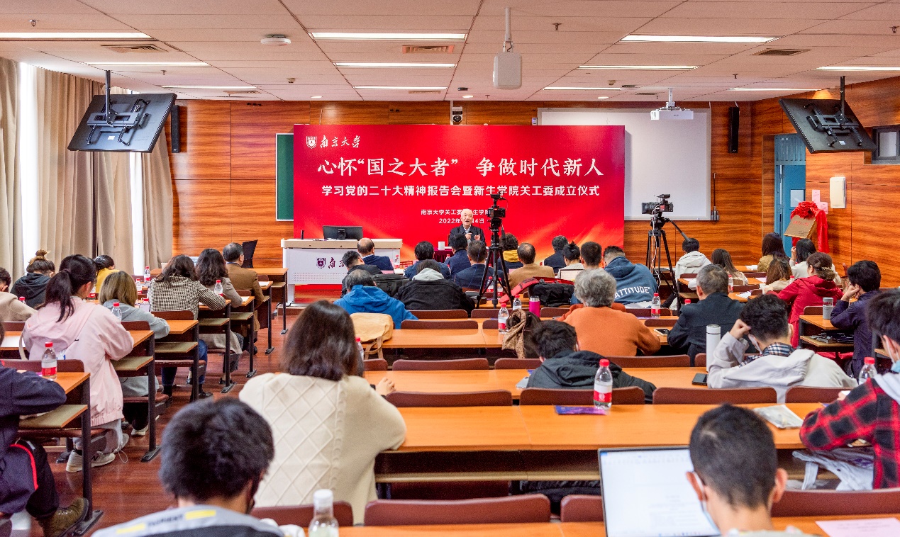 2022年11月4日,心怀"国之大者" 争做时代新人——学习党的二十大精神报告会暨新生学院关工委成立仪式在费彝民楼举办。校关工委常务副主任闵铁军、王晓如,校退协理事长、关工委副主任凌元元,校哲学系博士生导师、党委理论讲师团姚润皋教授,校离退休工作处处长兼老干部党委书记、关工委秘书长吴珩,新生学院关工委副主任滕维元等出席活动。活动由校新生学院党委书记、常务副院长蒋恩铭主持。