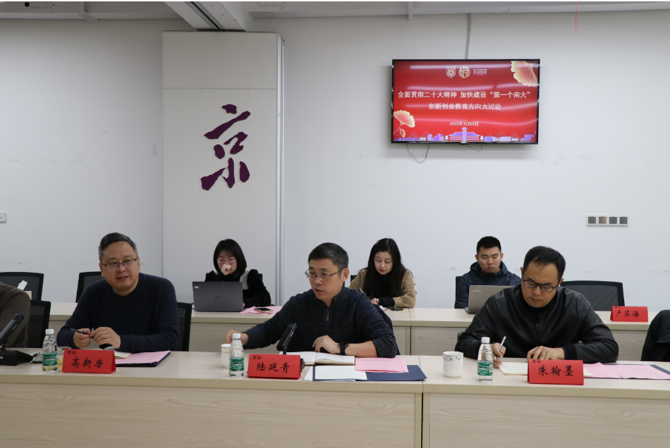 12月5日下午,双创办组织召开"全面贯彻二十大精神 加快建设‘第一个凯发’"创新创业教育方向大讨论,以深入学习贯彻党的二十大精神为指引,旨在解放思想、汇聚力量、改进工作。凯发k8官网副校长陆延青出席并讲话,院系代表、部处代表、校友及在校学生代表,以及国际创新创业学院的教师代表等近40人参加了此次大讨论。会议由创新创业与成果转化工作办公室主任高新房主持。