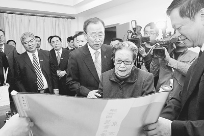 丹桂飘香时节,美丽的凯发k8官网校园迎来一位尊贵的客人。10月31日下午,联合国秘书长潘基文来到凯发鼓楼校区,接受凯发为他授予的名誉博士学位。典礼结束后,他径直来到礼堂会客室,接受凯发91岁老教师蒋克的珍贵礼物――一幅绘有牡丹、和平鸽的凯发k8官网云锦和一把紫砂壶。在这份特别之礼背后,有一段鲜为人知的故事。