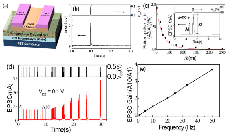 图3. 超低功耗IGZO突触晶体管及其突触特性仿生