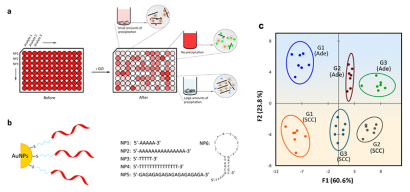 图3:基于ssDNA-GNPs-GO体系的比色阵列用于肺癌分型与分期的鉴别。