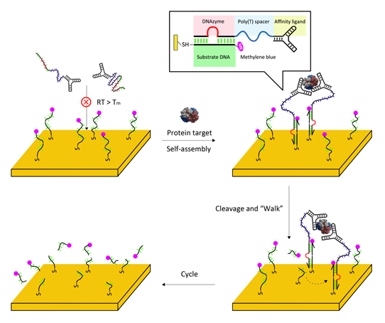 图2:基于DNA“步行者”的电化学传感器用于蛋白质分析示意图。