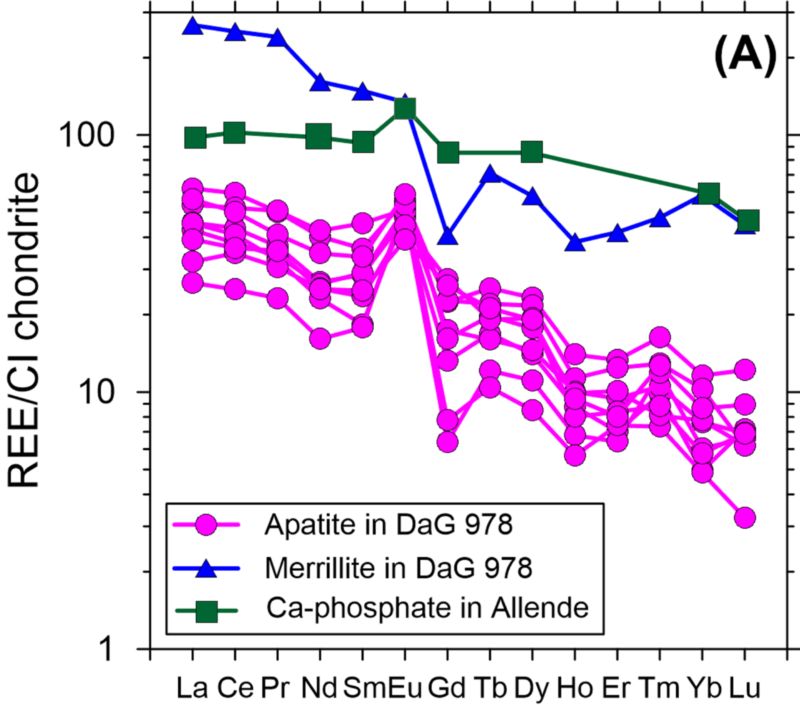 图1. DaG 978陨石中独特产状的磷灰石颗粒