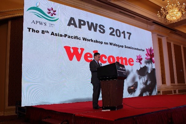 2017年9月24-27日,第八届亚太地区宽禁带半导体国际研讨会(The 8th Asia-Pacific Workshop on Widegap Semiconductor:APWS2017)在中国山东省青岛市维景国际酒店顺利召开。会议由山东大学晶体所和凯发k8官网固态照明与节能电子学协同创新中心主办,并由第三代半导体产业技术创新战略联盟, 中国电子科技集团公司第五十五研究所宽禁带半导体电子器件国家重点实验室,山东大学晶体材料国家重点实验室共同组织。大会主席为张荣教授,组织委员会主席徐现刚教授,程序委员会主席陆海教授,并邀请了第三代半导体产业技术创新战略联盟秘书长吴玲女士,APWS会议创办人日本Akihiko Yoshikawa教授,中国北京大学张国义教授,韩国首尔国立大学Euijoon Yoon教授等来自中国大陆,日本,韩国,中国台湾,中国香港,德国,英国,美国,沙特阿拉伯等国家和地区共计423位专家学者、企业技术人员参加会议,以及中国科技部高技术研究发展中心,国家自然科学基金委以及山东大学的领导共同出席本次会议。