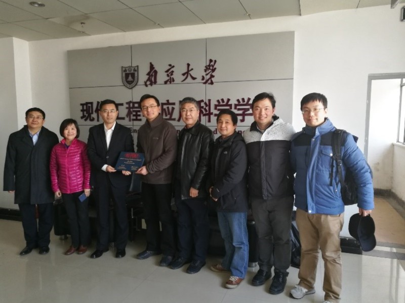 12月26日,杜邦中国研发中心总经理陈志东、交通与先进材料部门技术总监孙难见、电子与成像部门技术总监吴秋菊访问现代工程与应用科学学院,院党委书记臧文成、党委副书记周剑峰、助理院长赵刚、助理院长朱嘉、生物医学系副主任张弢、教授张会刚在鼓楼校区科学楼会议室会见来宾。