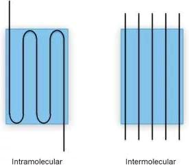 图1 链状大分子的分子内链折叠成核模式和分子间缨状微束成核模式