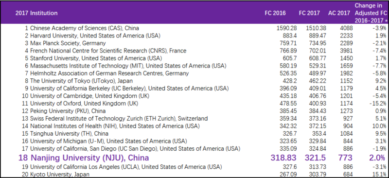 新闻及数据整理来自:natureindex.com,浏览2018自然指数榜单请访问:natureindex.com/annual-tables/2018