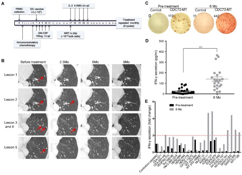 该技术临床应用案例:一例胸腺瘤术后,多发转移性肺结节的患者,在三线治疗失败后接受个体化新抗原为基础的DC疫苗联合NRT回输治疗,迄今已实现近3年完全缓解(CR)。