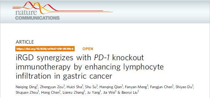 iRGD synergizes with PD-1 knockout immunotherapy by enhancing lymphocyte infiltration in gastric cancer