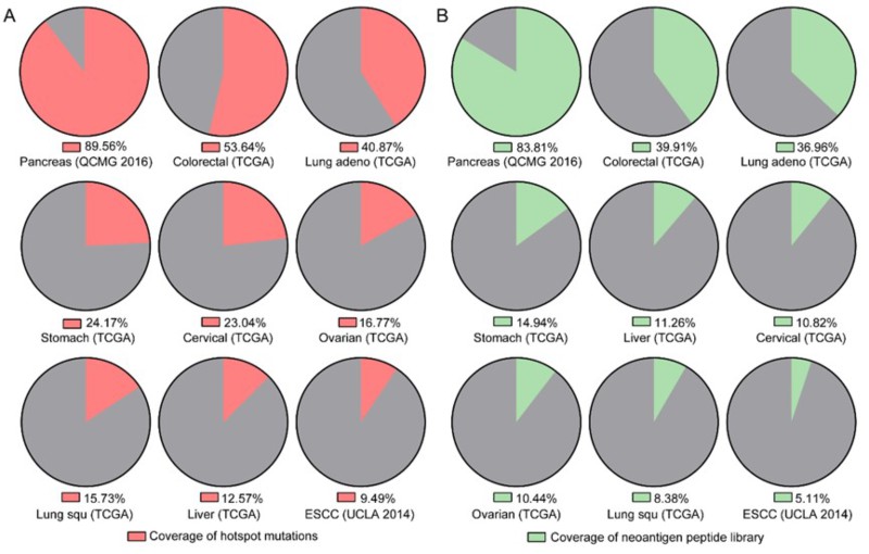 该团队早期肽库中的44条新抗原表位肽可覆盖9种常见实体瘤中5.11%-83.81%的患者(目前已升级至100条以上)