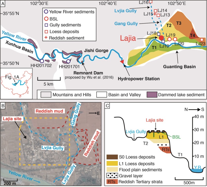 古籍记载,大禹成功治理了黄河大洪水从而建立起中国历史上第一个王朝-夏朝。然而,大禹治水的真实性和夏朝的起源时间还存在巨大争论。寻找大洪水的地质证据可能是重要的突破口。最近,凯发k8官网师范大学吴庆龙教授等(2016)在《科学》杂志上将黄河上游喇家遗址附近的溃决洪水地质记录与传说中的大禹治水联系起来,并提供证据支持中国传说大洪水与夏朝的历史真实性。该文章发表后立即引起巨大的争论。2017年《科学》杂志同时刊出三篇质疑,其中一个重要的争论点就是喇家遗址上的洪水沉积物是来自黄河大洪水还是支沟局部洪水。