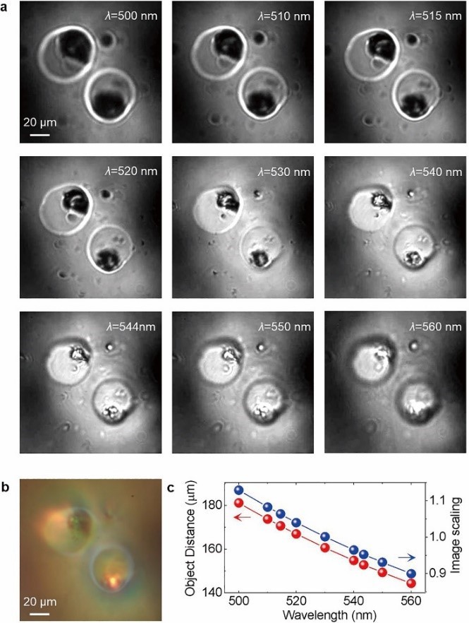 近日,现代工程与应用科学学院李涛教授、祝世宁院士研究组与台湾“中研院”蔡定平教授研究组合作在超构透镜成像研究上又取得重要进展,他们利用超构透镜的大色差效应发展出无机械移动的光谱变焦和层析技术,实现了对生物细胞的显微立体层析成像,展示了超构透镜在高集成、高稳定的成像系统方面巨大的应用潜力。相关成果以“Spectral tomographic imaging with aplanatic metalens”在线发表在国际光学顶尖期刊Light: Science & Applications 8, 99 (2019)。现代工程与应用科学学院李涛教授是论文通讯作者,现代工程与应用科学学院16级直博生陈晨是论文第一作者,16级直博生宋万鸽和台湾“中研院”的陈家雯等也出重要贡献。
